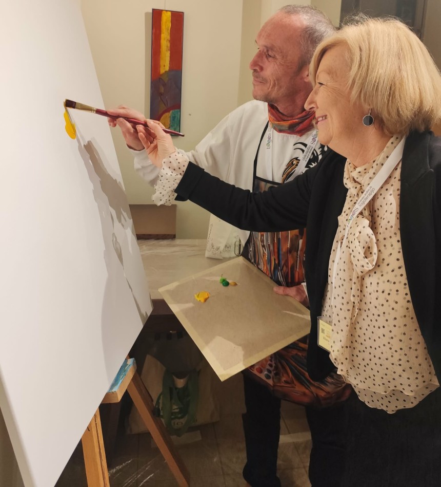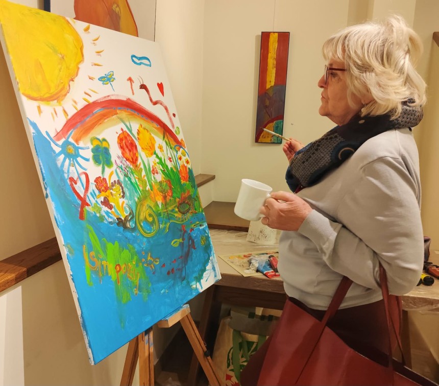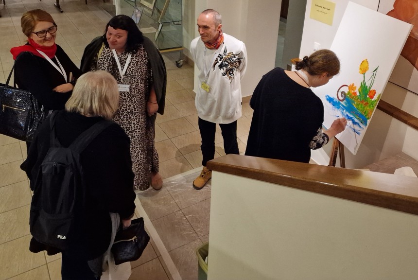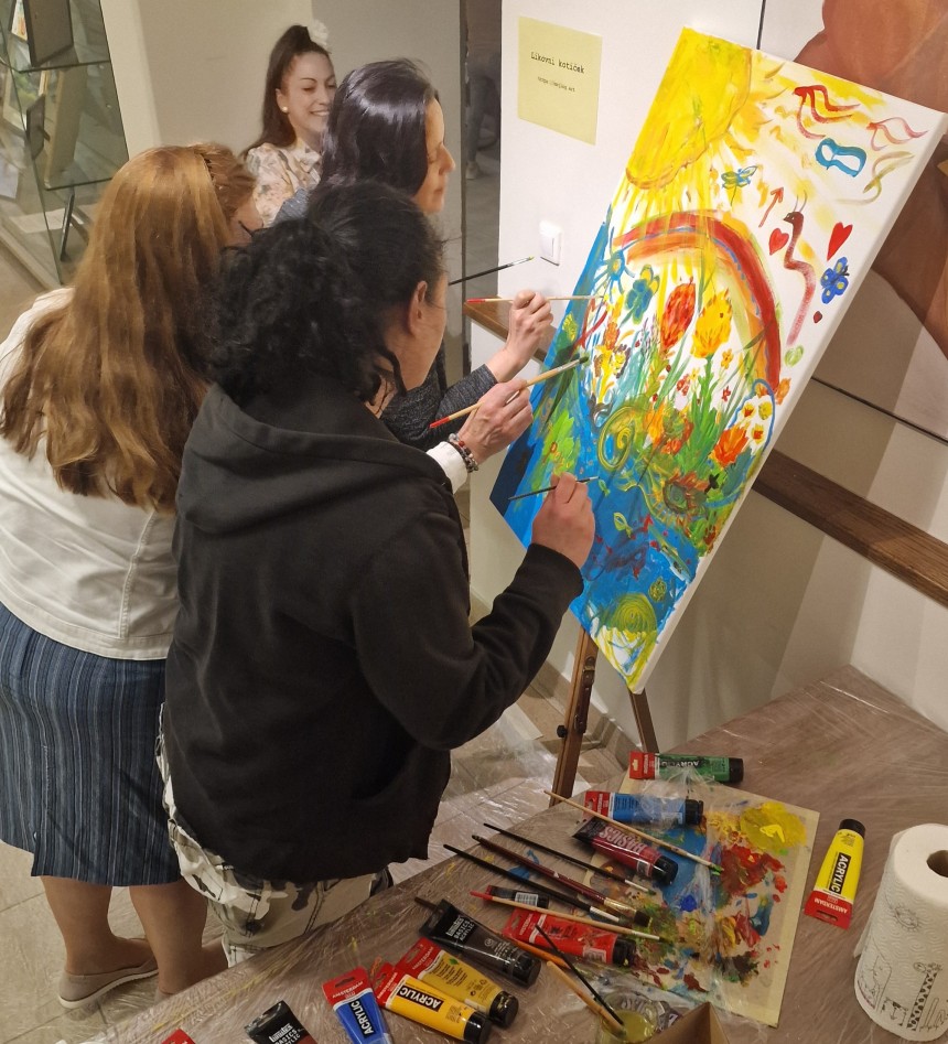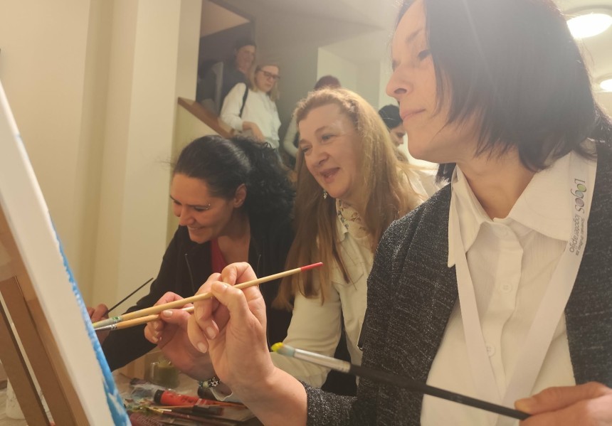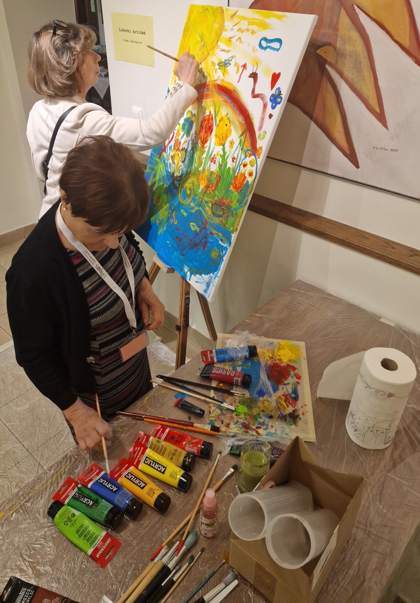 V likovnem kotičku so udeleženci simpozija delili svoje izkušnje ali se bodrili k ustvarjanju.