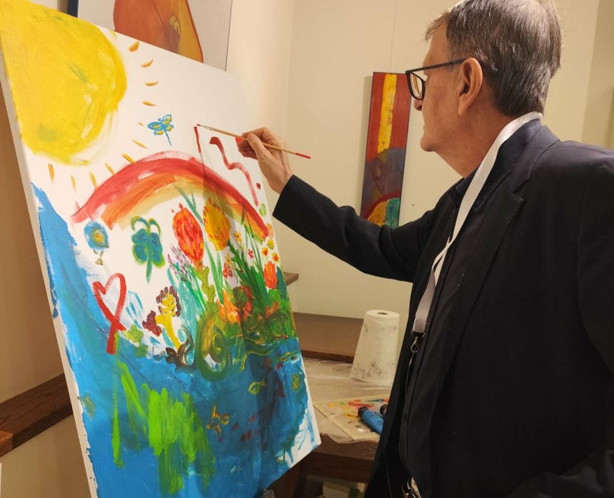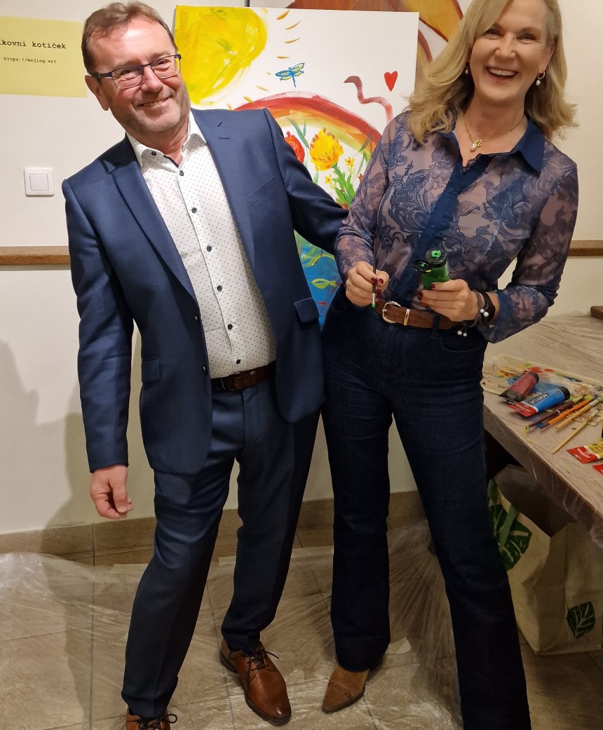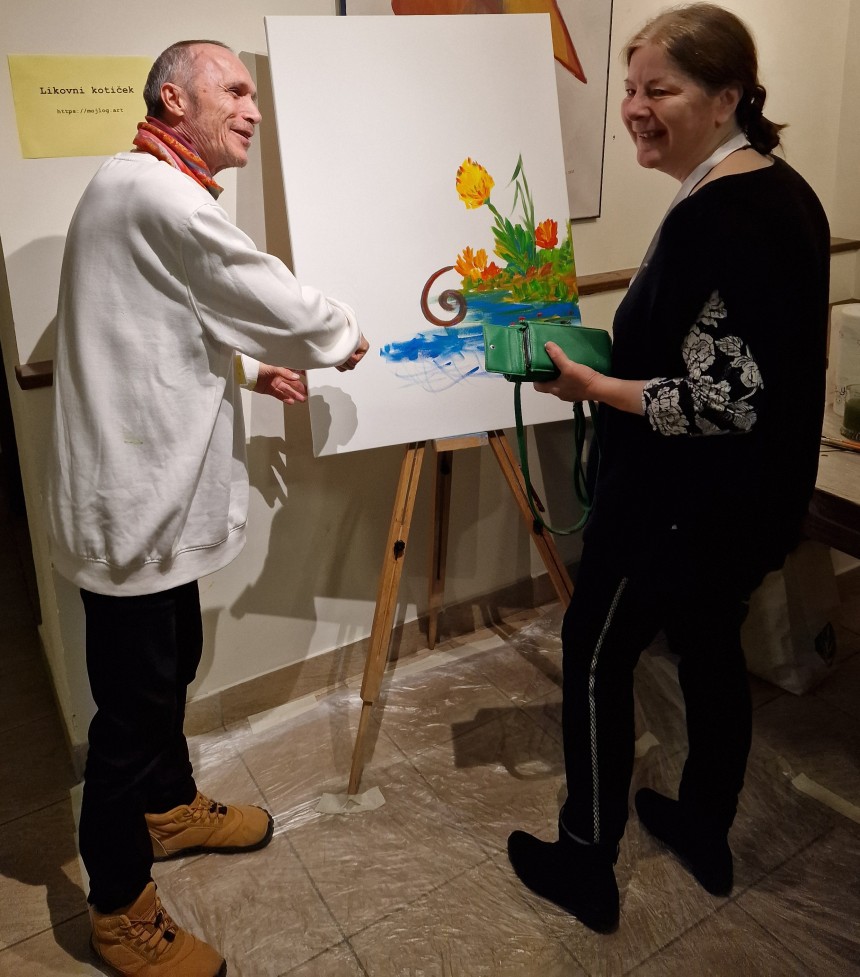 Prva slikarska poteza je bila narejena z enim čopičem v dvojici: Klara in Janez.